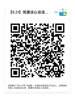 2.    全体医学院学生党建骨干可在钉钉直播群观看,直播群二维码见下方。欢迎各位党建骨干结合实际工作情况,积极提问或提供案例,问卷链接:https://form.zju.guoxinschool.com/#/dform/genericForm/WAj1fcG1